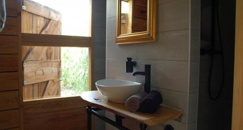 Cozy chalet with a decorative fireplace, at nature reserve